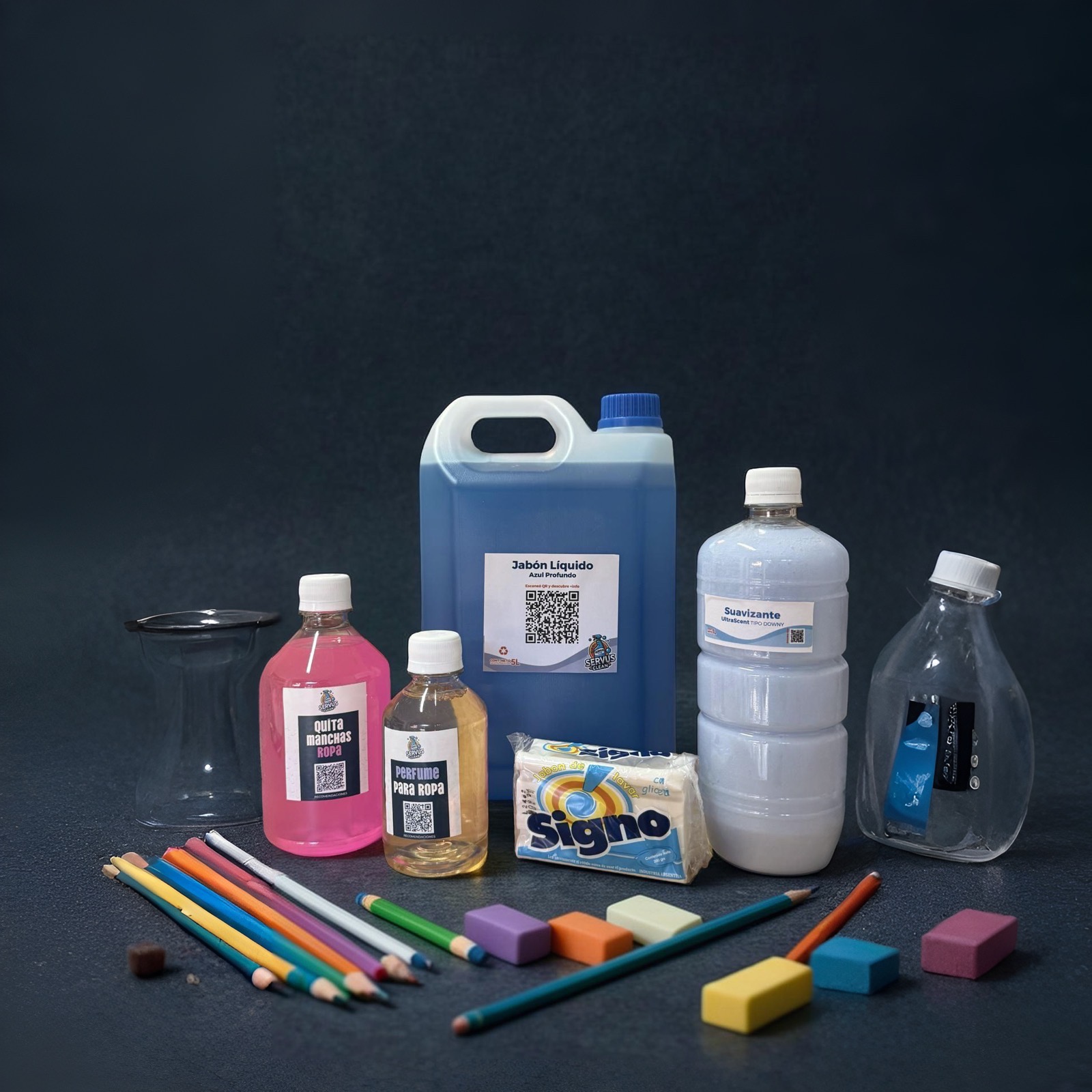 1 Jabón Líquido Azul Profundo (5 Litros): Nuestra fórmula de gran rendimiento y alto poder de limpieza, ideal para el lavado diario de gran volumen de ropa escolar. Limpieza profunda garantizada en cada bidón.